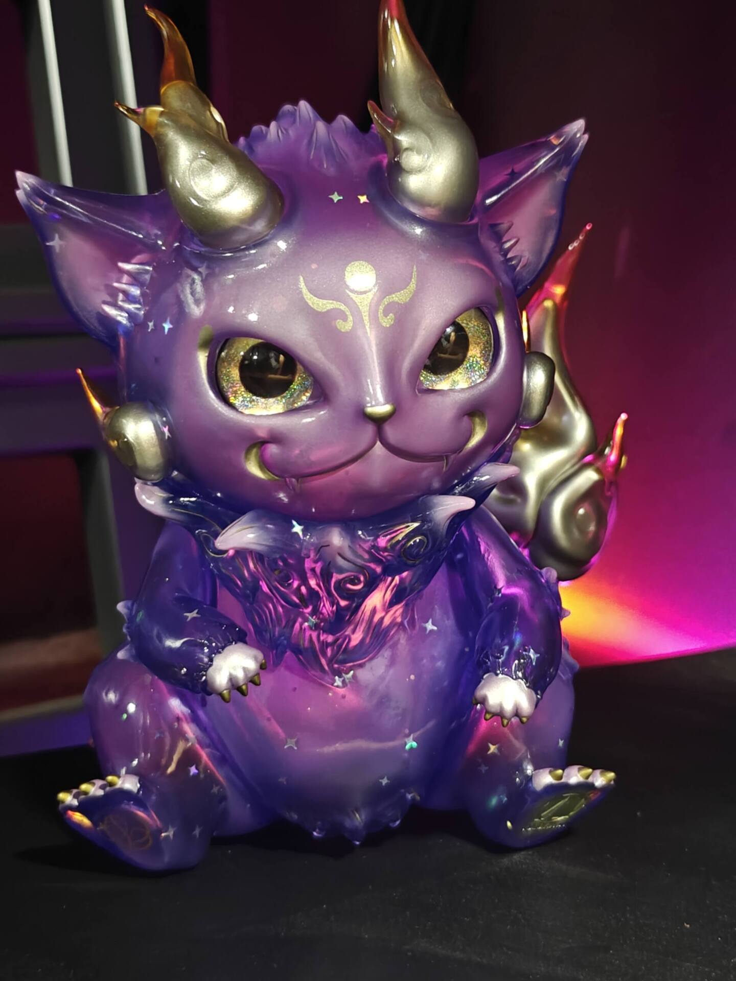 One day, Hotarou was summoned by the universe. As it walked, each step transformed its body into a translucent tapestry of cosmic colors. The stardust glimmered and shifted, reflecting vibrant shades of purple, pink, and gold, as if it were a living piece of the galaxy itself.